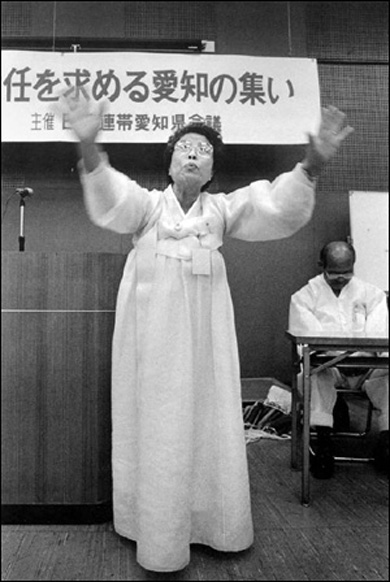 | ▲ 고 횡금주 씨가 일본 나고야 집회에서 지난날 일본군의 만행을 증언하고 있다. |