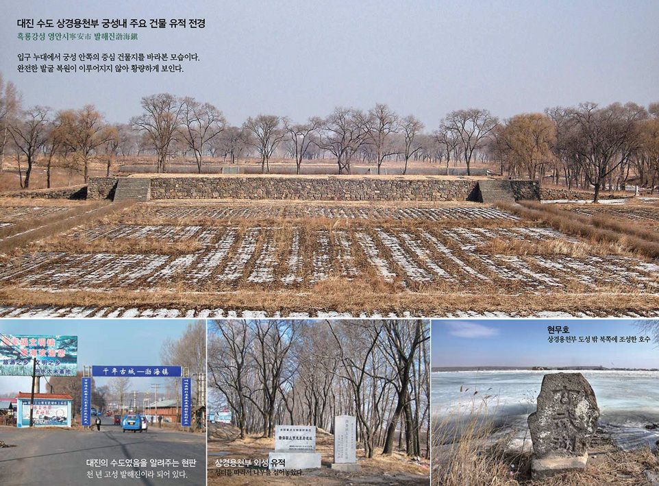 지금 대진국의 상경 유적지는 발해진渤海鎭에 있다. 이곳에는 상경유지上京遺址 박물관이 있어서 1930년대 이래 발굴되고 조사된 유적지의 실체를 낱낱이 보여 주고 있다. 그러나 진열실 첫머리부터 발해를 설명하는 문구는 “당나라의 속국 중 하나, 속말말갈 중심의 지방 민족 정권”이라고 되어 있다. 발해가 한국사 일부라는 정체성을 깡그리 부정하는 문구이다. 이는 동북공정東北工程이라는 말 자체가 나오기 전부터 중국의 일관된 입장이다. ‘발해사(대진국사)는 한국사인가? 중국사인가?’를 두고 두 나라의 학자들 사이에 치열한 공방전이 거듭 벌어지고 있다.